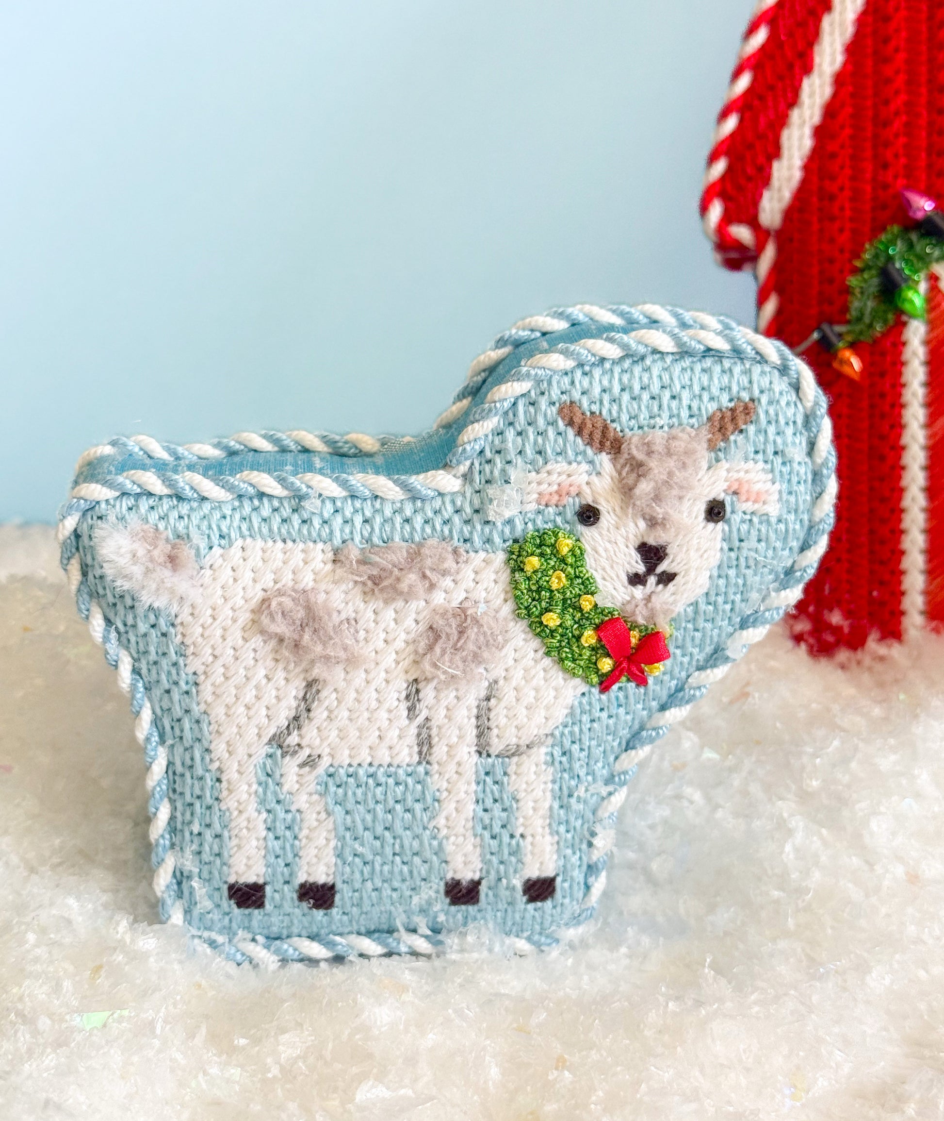 It would be sweet as an ornament or a standup. There are six other canvases in this set: Holly the Horse, Petunia the Pig, Tractor Santa, Wooly the Sheep, and the Red Barn Standup.