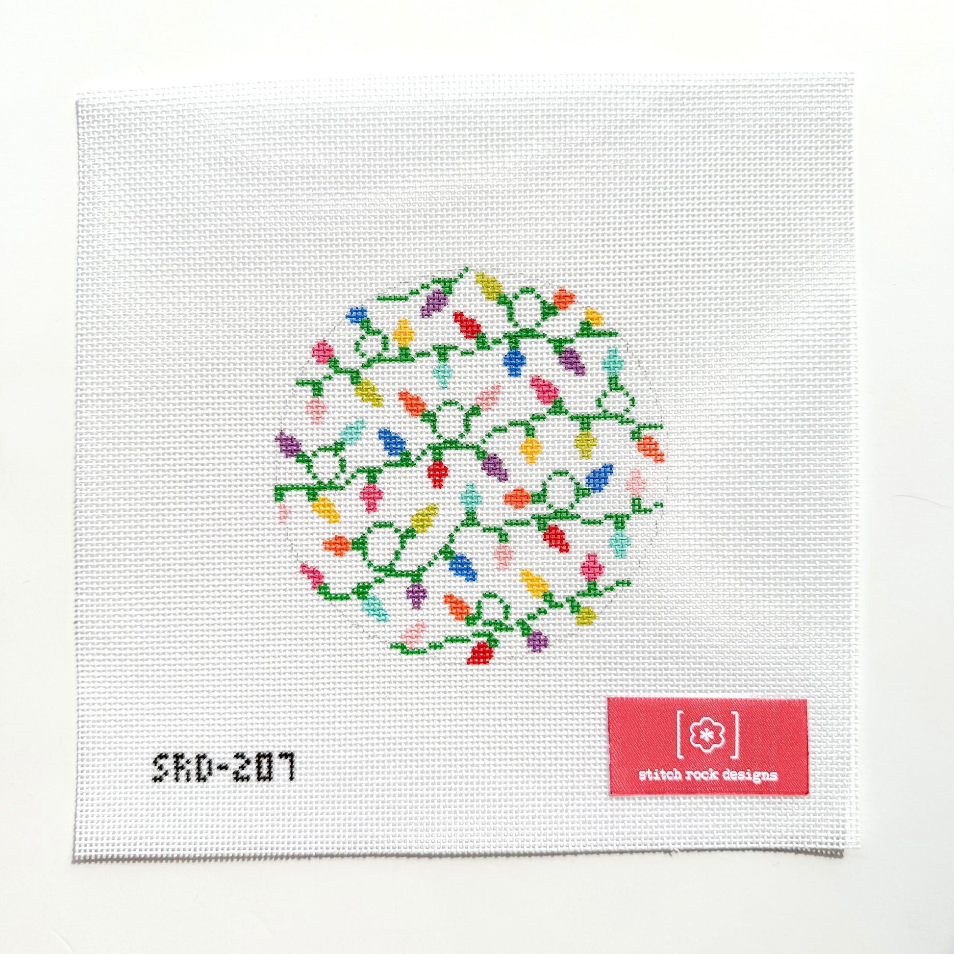 Design measures 4” round on 18 mesh, making it the perfect size for an ornament, coaster, or 4” round insert!
